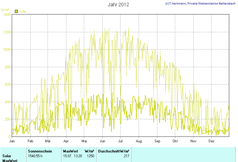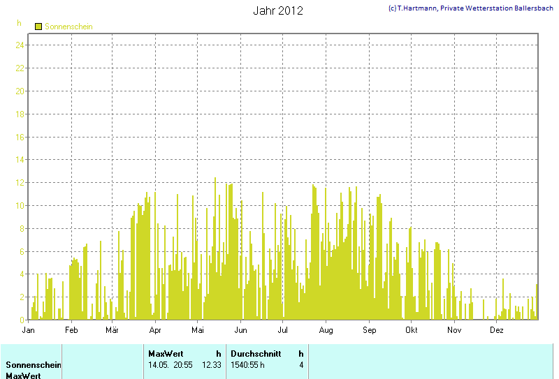 Die Wetter-Daten, die auf dieser Website veröffentlicht werden entstammen ungeeichten Messgeräten und erheben keinen Anspruch auf Richtigkeit,Vollständigkeit oder Genauigkeit. Der Inhaber der Site haftet für keinerlei Schäden, die aus einer etwaigen Nutzung dieser Daten entstehen sollten |
